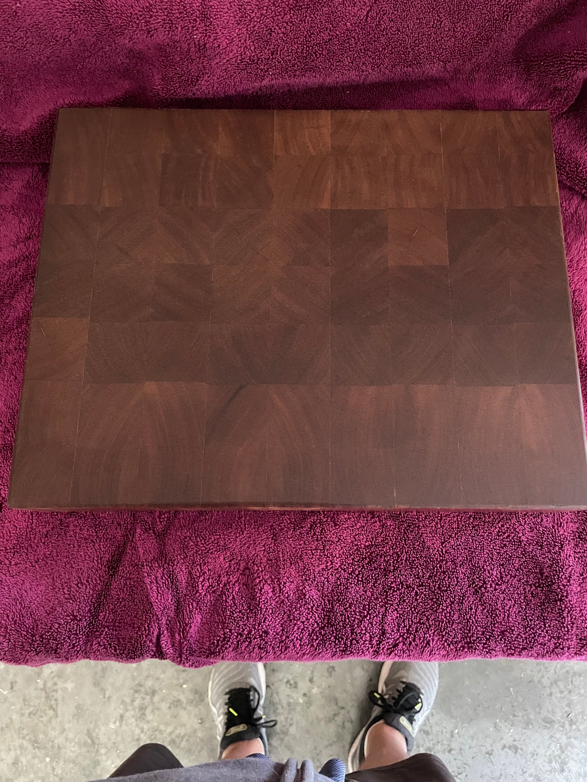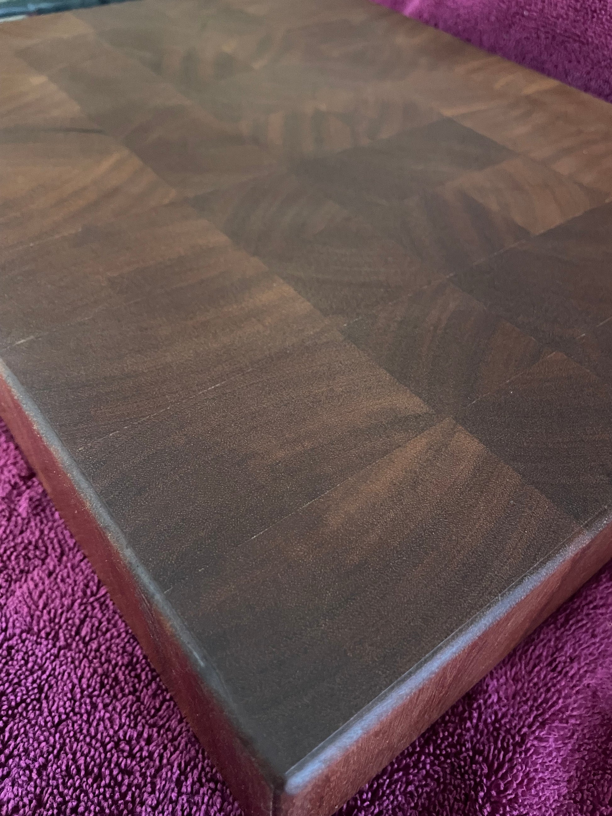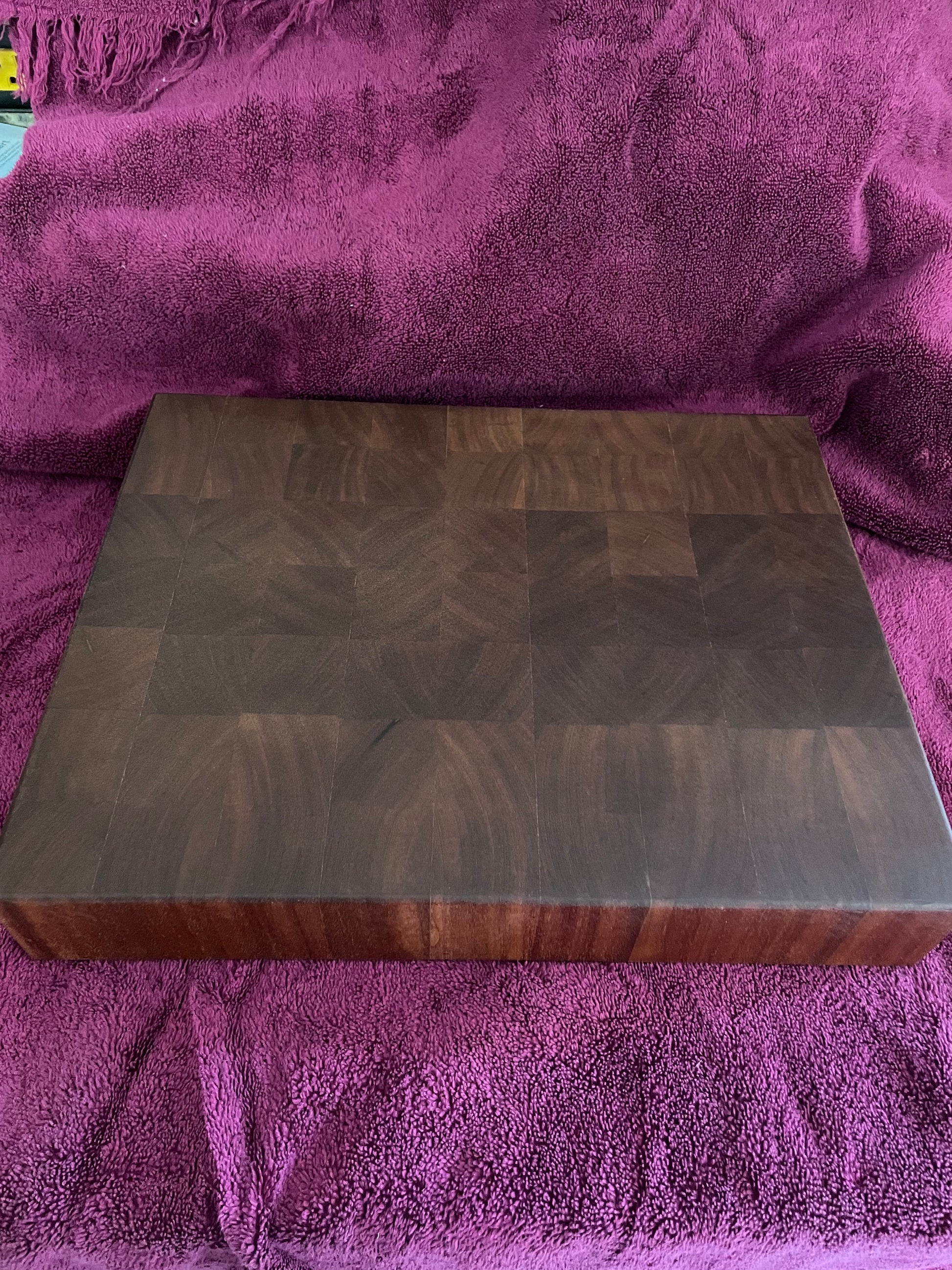 This beautiful expression of 100% End Grain African Mahogany (Sapele) is oversized at 12" x 15" and a bit more than 2.5" thick. Streaked with mahogany's characteristic and subtle grain patterns, this board glows like a dusky jewel. This will make a handsome addition to any kitchen. This is one of the harder hardwoods registering at 1500 on the Janka scale, meaning it will hold up to even the harshest of cutting tasks. Sapele's natural moisture and rot resistance means that it will do just fine in your kitchen and that you'll be passing this board along to your kids and their kids. Note: Don't leave it wet. You did see Gremlins, right?
