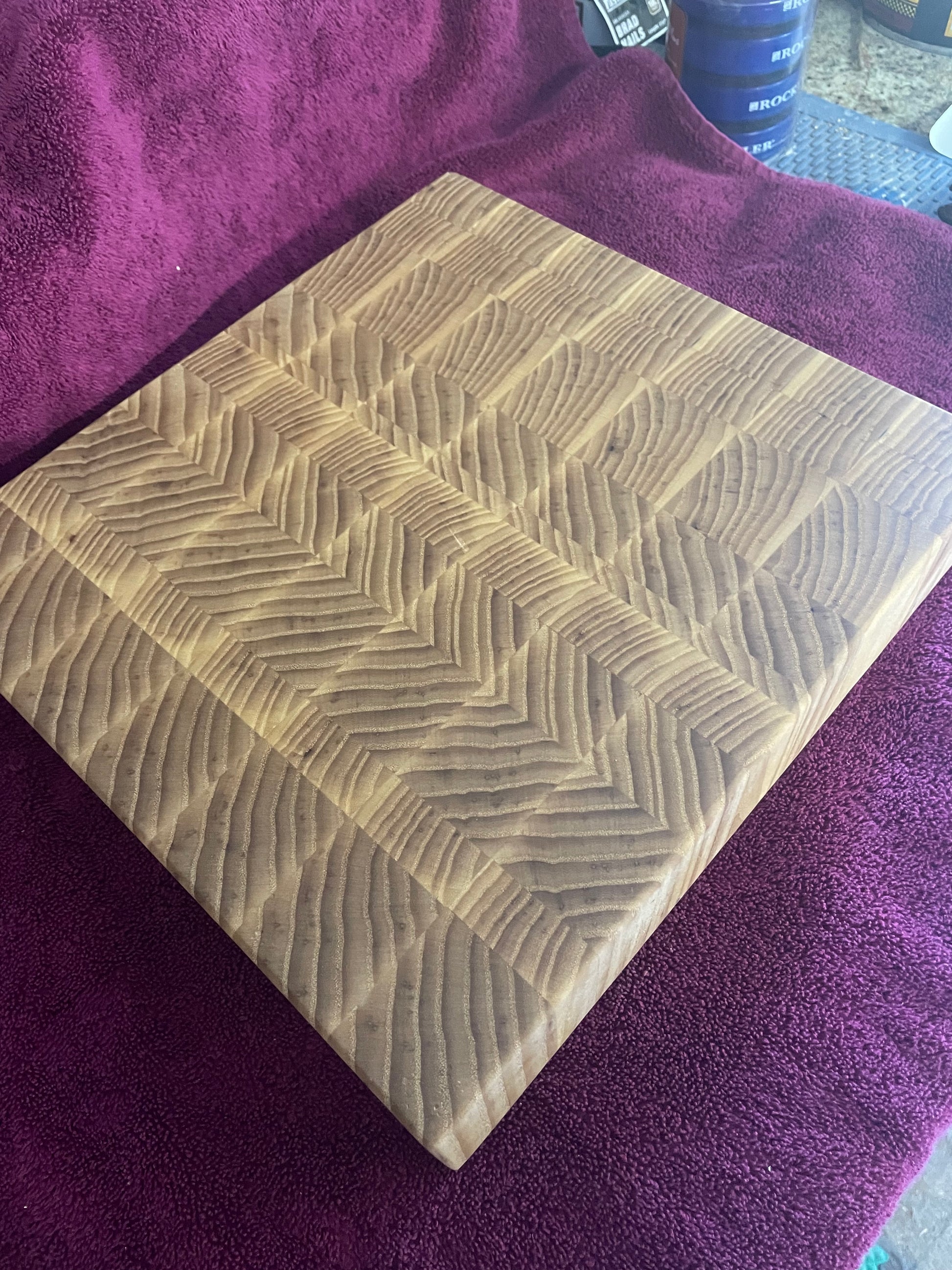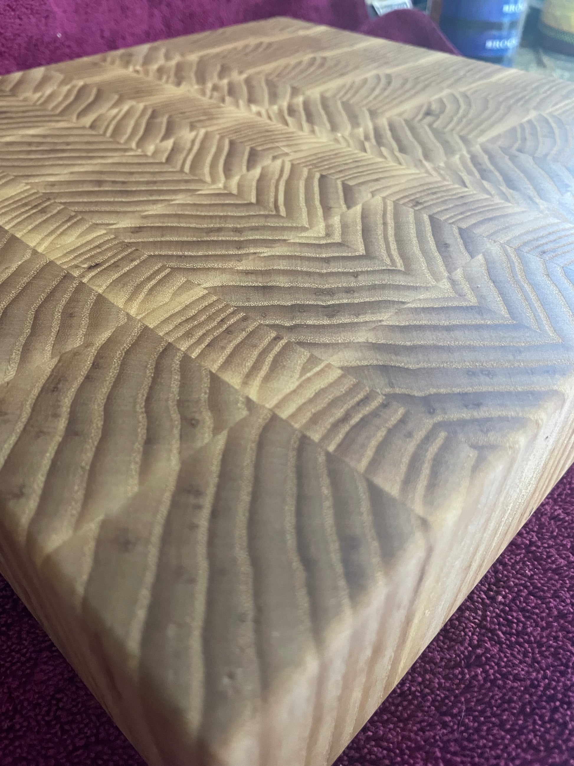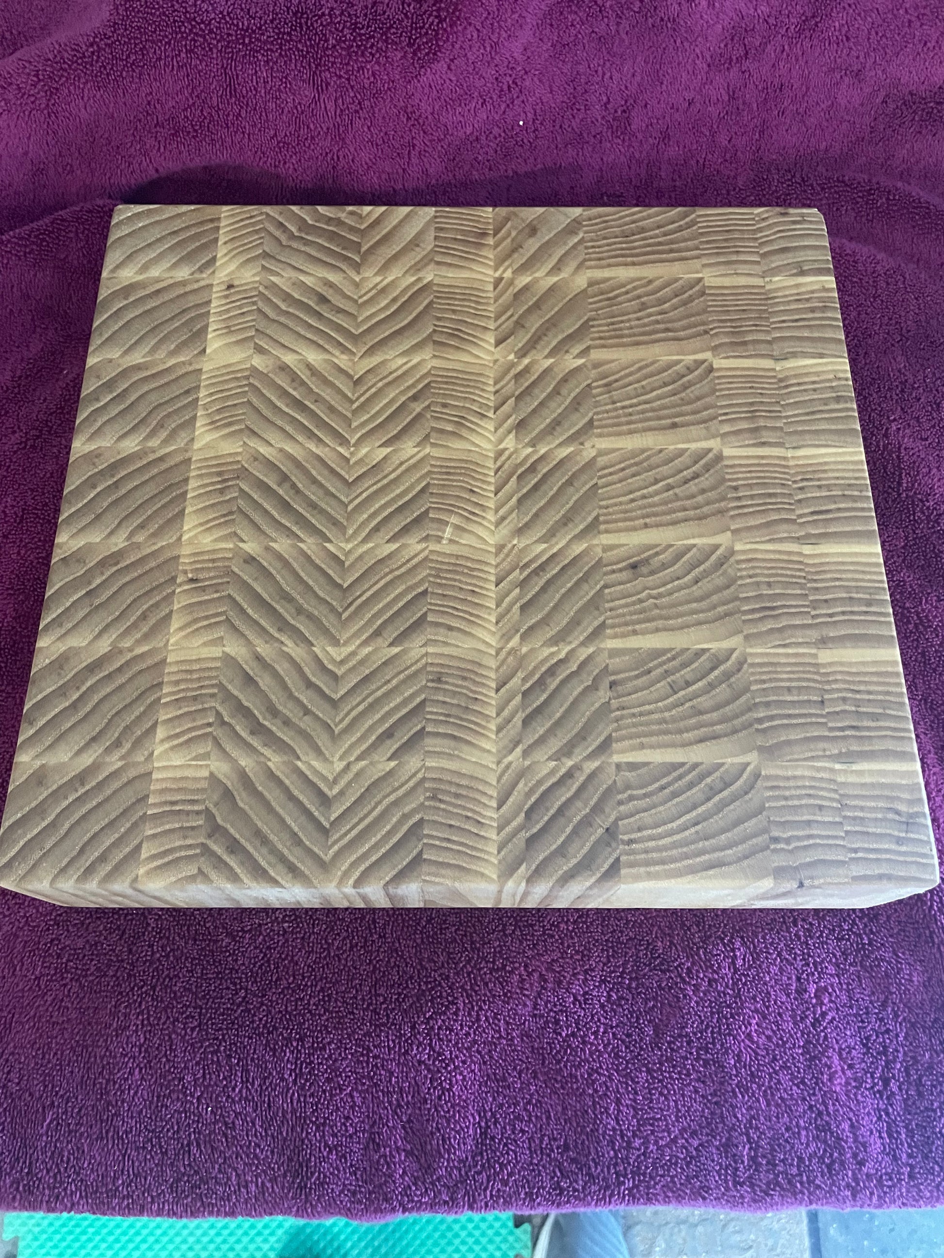 This board is 100% White Mountain Ash that displays incredible symmetry in its grain structure and brings to mind High Voltage. Measuring approximately 12" x 12" and 2.5" thick, this heavy duty board will handle any cutting amps you can dish out.