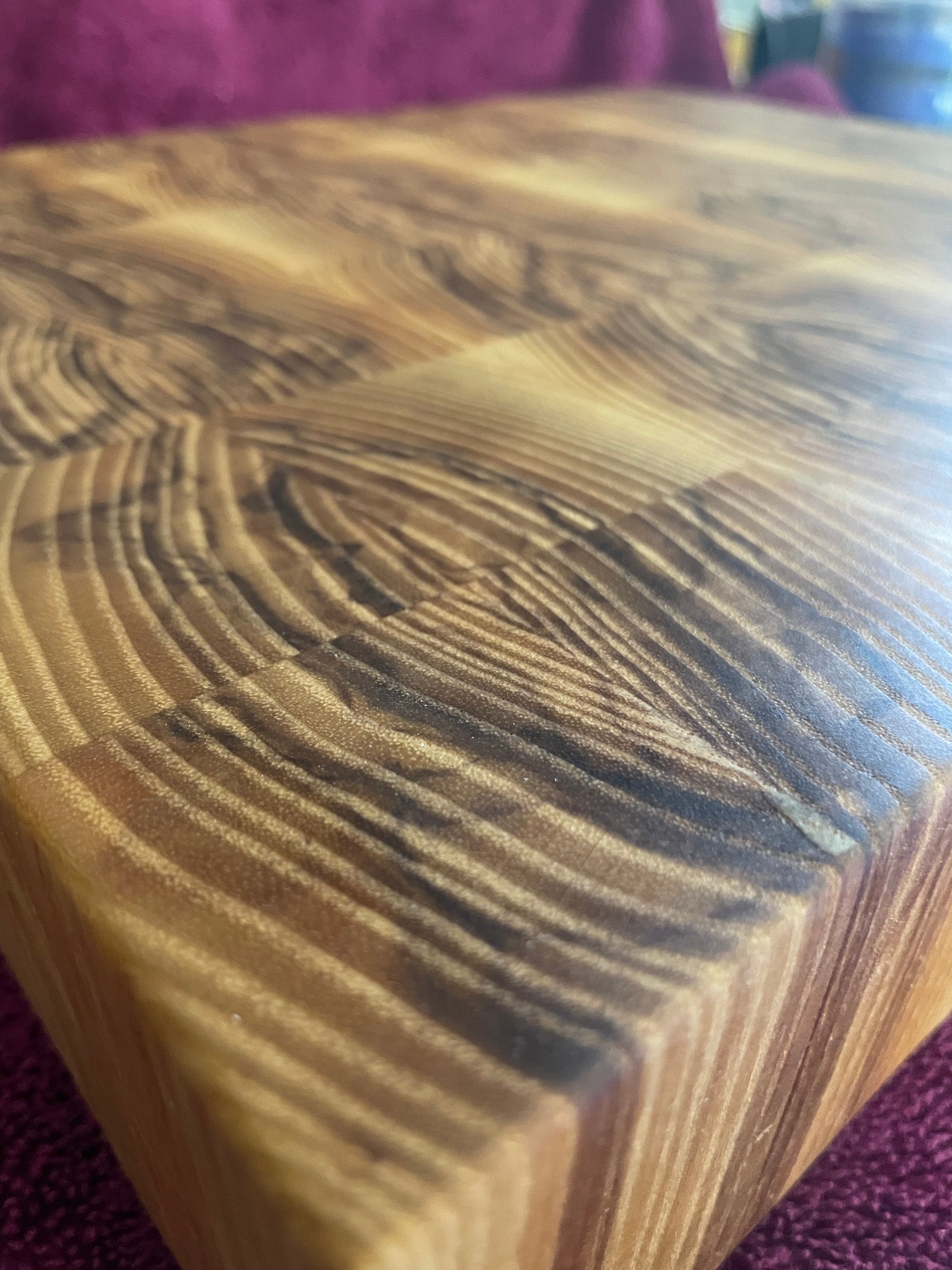 This board will take you on a magic carpet ride of swirls and designs right out of the 1960's. Built of 100% Swamp Ash, the figure in this board evokes all of those classic trips that "you've read about". This board is on the large side, measuring 12" x 14" inches and a solid 2.5" thick, this board is very heavy duty and will hide knife marks exceptionally well. Built oversize for folks with big knives and bigger dreams, it is ready for the most grueling culinary trips.