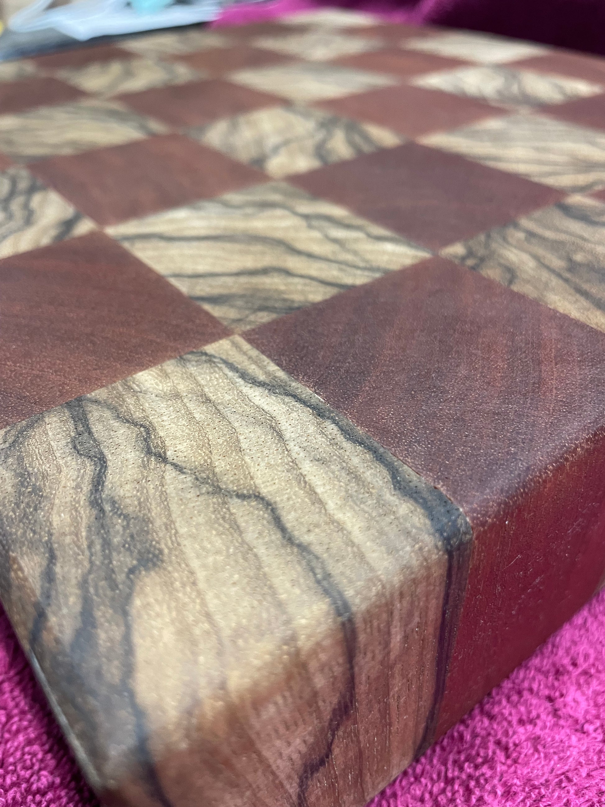 Beautiful African Mahogany (Sapele) and Black Limba pair up in squares to form this beautiful mini-board. Measuring approximately 10' x10" and 2" thick, this beautiful board honors the best that the mountains of West Africa have to offer. Each wood grows on West African mountain sides and, together, they make a stunning combination that is sure to bring to mind the rains down in Africa.